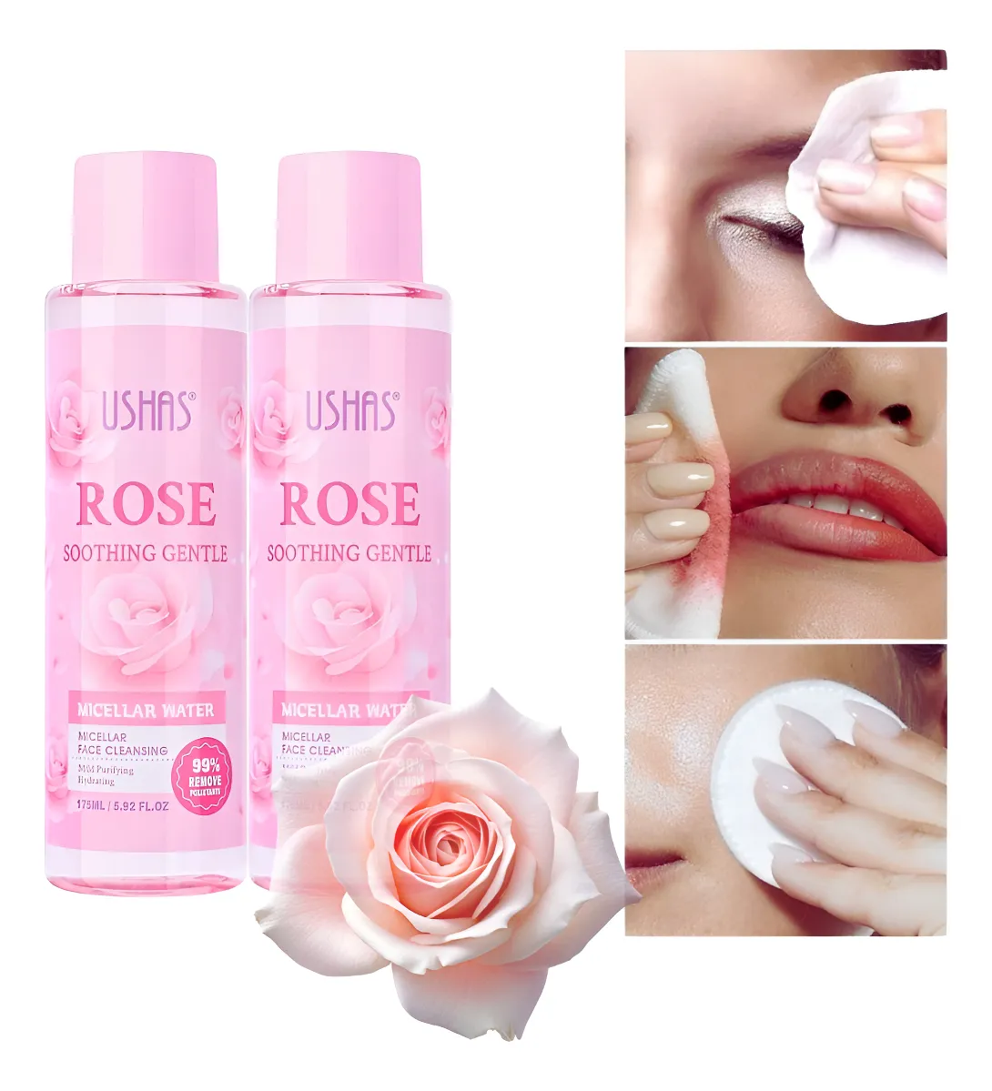Descubre la pureza de la naturaleza en tu rutina de cuidado facial con el Agua Micelar de Agua de Rosas de Ushas. Este producto, formulado con extracto de agua de rosas, ofrece una limpieza profunda y suave, ideal para todo tipo de piel y edades. Su fragancia delicada aporta una sensación de frescura y bienestar, convirtiendo tu limpieza facial en un momento de autocuidado. Diseñado para el rostro y el cuello, el agua micelar es perfecta para eliminar impurezas, maquillaje y residuos, dejando la piel revitalizada y con un aspecto saludable.