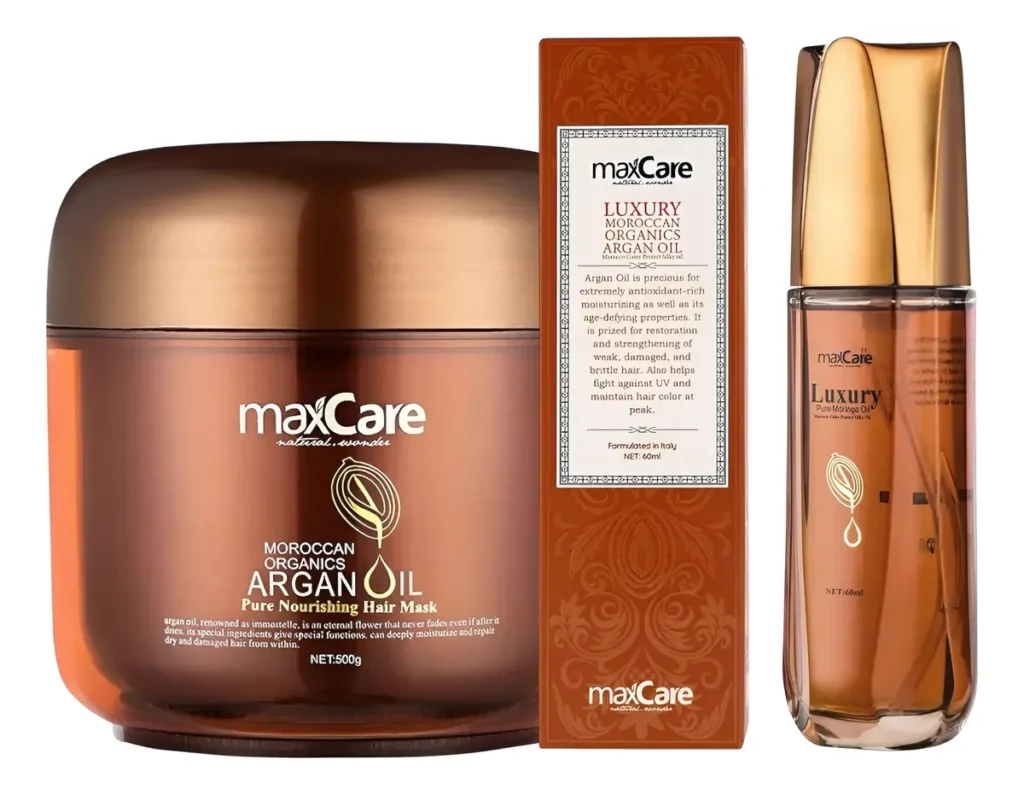 El Luxury Argan Oil de MaxCare 60 ml Es un tratamiento capilar enriquecido con aceite de argán puro, ideal para nutrir, reparar y proteger el cabello. Su fórmula ligera se absorbe rápidamente sin dejar sensación grasa, aportando suavidad, brillo y control del frizz. Beneficios: • Nutre y repara en profundidad. • Controla el frizz y aporta suavidad. • Brinda brillo saludable al cabello. • Textura ligera de rápida absorción.