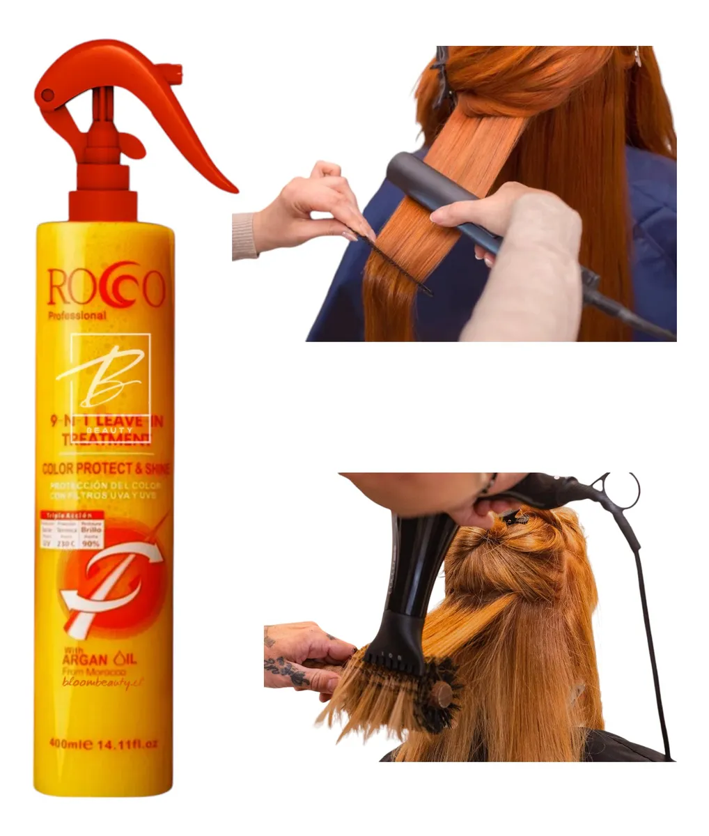 Protege tu cabello mientras lo transformas con el Protector de Calor con Argán de Rocco! Este increíble producto no solo es tu mejor aliado contra los daños del calor, sino que también nutre y revitaliza tu melena, dejándola más suave, brillante y manejable que nunca. Diseñado especialmente para proteger tu cabello de las agresiones térmicas que causan las herramientas de calor como secadores, planchas y rizadores, este protector actúa creando una barrera invisible que evita la pérdida de humedad y el daño en la estructura capilar. Gracias a su contenido de aceite de argán, además de protegerlo, hidrata profundamente cada hebra, devolviendo la vitalidad incluso a los cabellos más castigados.