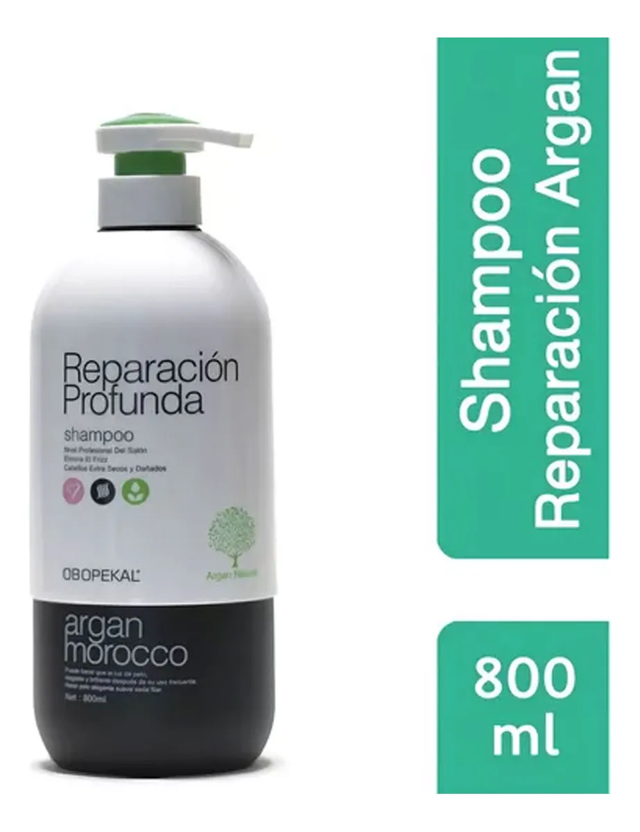 Descubre la magia del Shampoo Argan Morocco 800 ml de OBOPEKAL, un producto diseñado para brindar una reparación profunda a tu cabello. Es la solución perfecta para todo tipo de cabello, proporcionando un cuidado integral y dejando tu cabello suave y manejable. P
