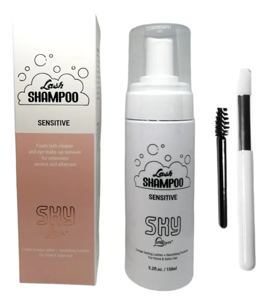 Shampoo para Pestañas. Está diseñado especialmente para la limpieza profunda de pestañas naturales y extensiones. Su fórmula suave y nutritiva elimina eficazmente residuos de maquillaje, grasa y suciedad sin irritar los ojos, ayudando a mantener tus extensiones en mejores condiciones por más tiempo.